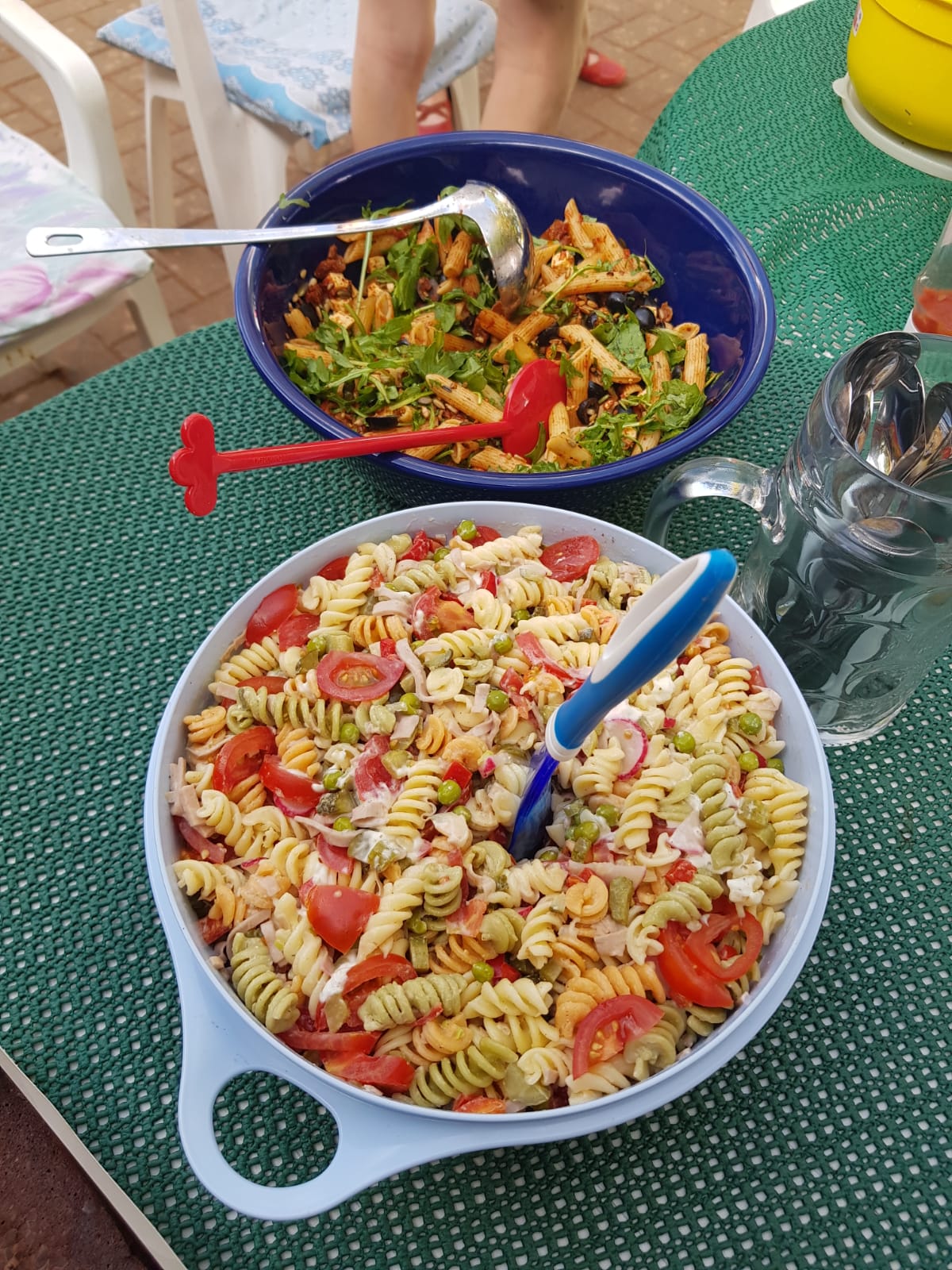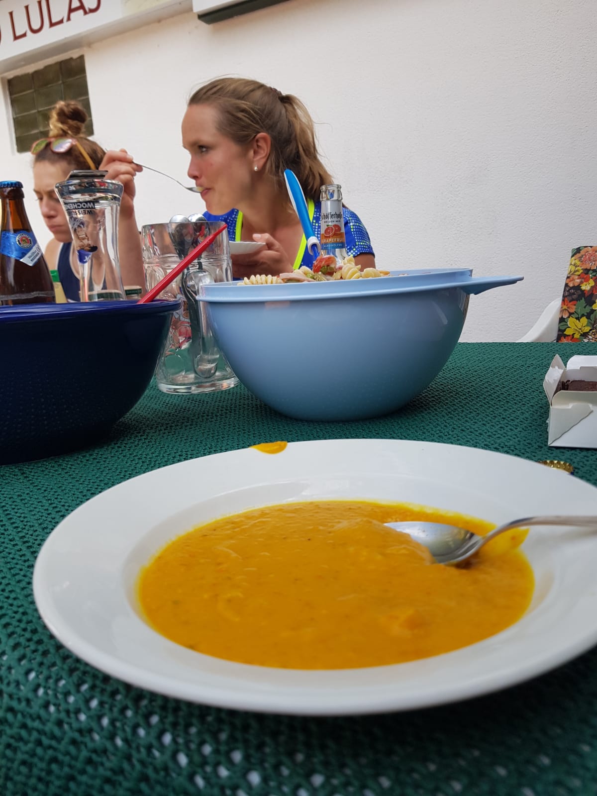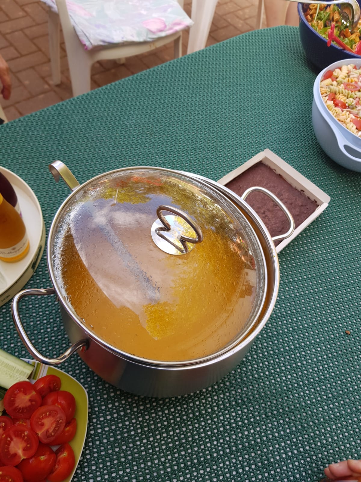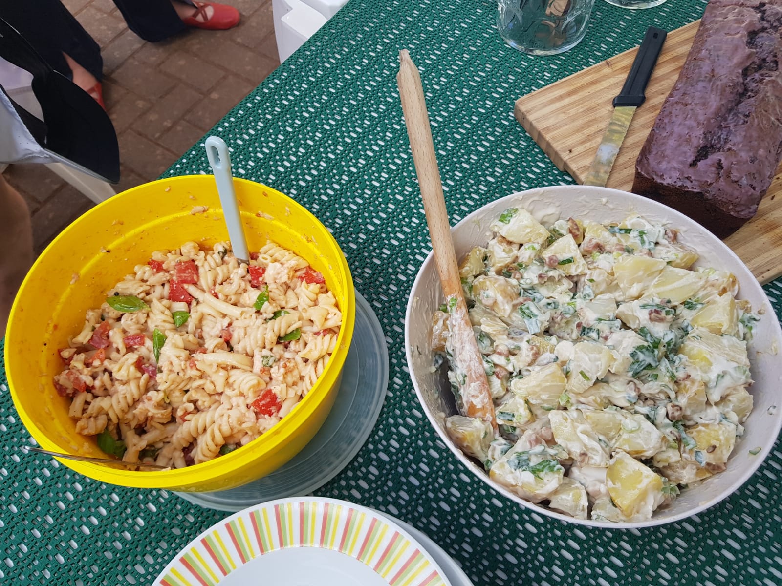 Und wer gut spielt, soll auch gut essen. Markus, der an diesem Tag nicht aktiv mitspielen konnte, da er als junger Vater Betreuungspflichten für den Nachwuchs hatte, zauberte auf dem Grill leckere Steaks und Bratwürste für alle anwesenden Mitglieder des Tennisvereins. Dazu gab es als Vorsuppe eine oberleckere Kürbissuppe von Birgit und eine Schüssel leckersten Chili con Carne von Luppi und anschließend die verschiedensten Varianten an Nudel- , Schicht- und Kartoffelsalat.