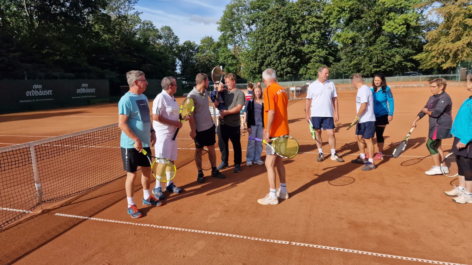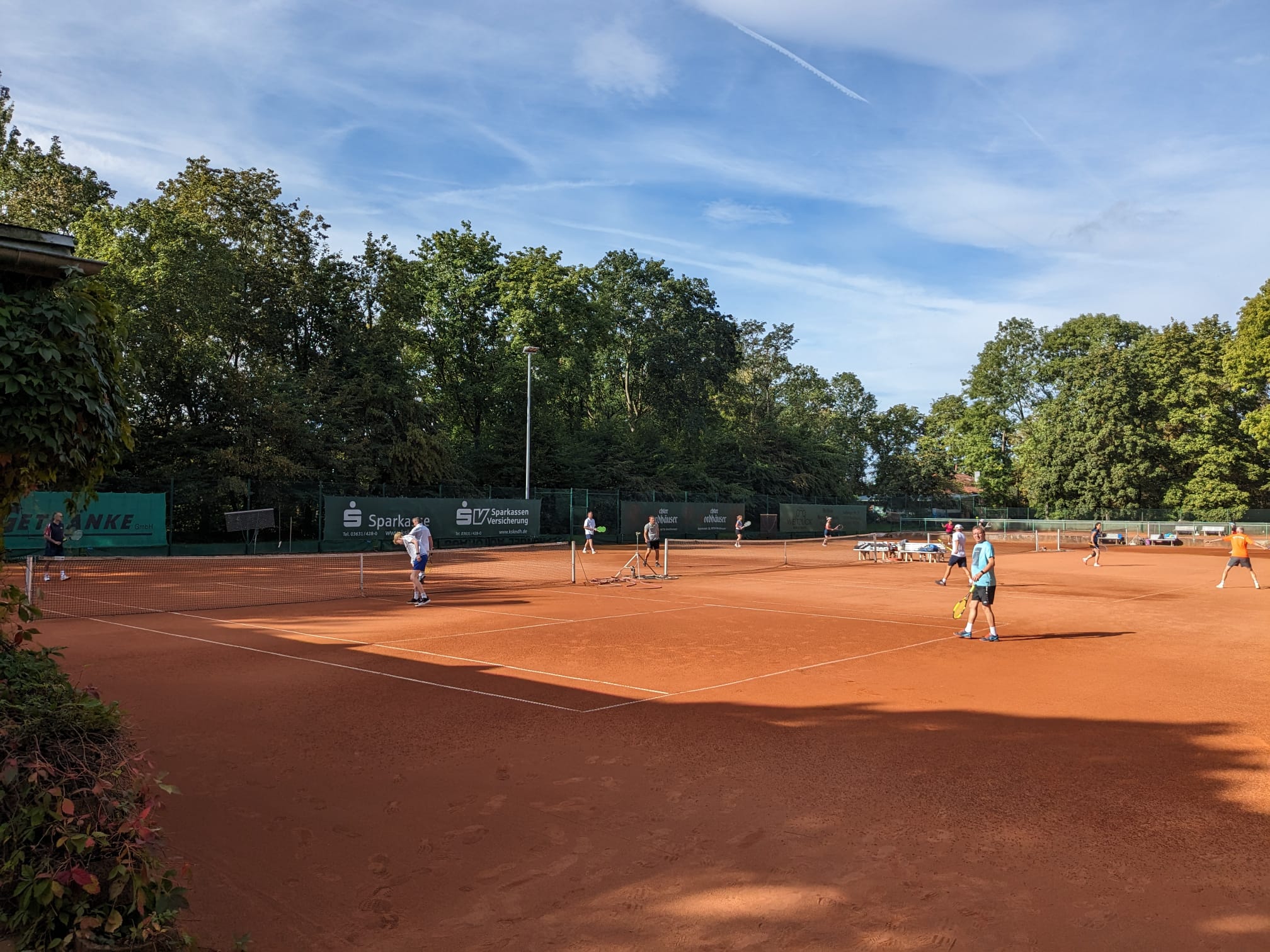 Die freie Zeit am so schön im September gelegenen Feiertag- dem internationalen Kindertag- nutzten viele Mitglieder unseres Tennisvereins , um sich an der diesjährigen Herbstmeisterschaft zu beteiligen, um mit Spaß aber auch ein wenig Ehrgeiz die Kräfte zu messen. 8 Frauen und 8 Männer standen auf der aktiven Teilnehmerliste und so entschied man sich im geschlechtsspezifischen Doppelmodus zu spielen. Nach jedem Spiel über 20 Minuten wurden die Doppelpartner neu ausgelost, was für zusätzliche Spannung und Freude sorgte. Die Bälle waren in der wunderschön scheinenden Spätsommersonne teilweise heftig umkämpft und kein Punkt wurde vorzeitig abgegeben. Oft prallte jugendlicher Elan und Power auf die Raffinesse und Taktik der Älteren, was dem Ganzen eine besondere Würze gab.