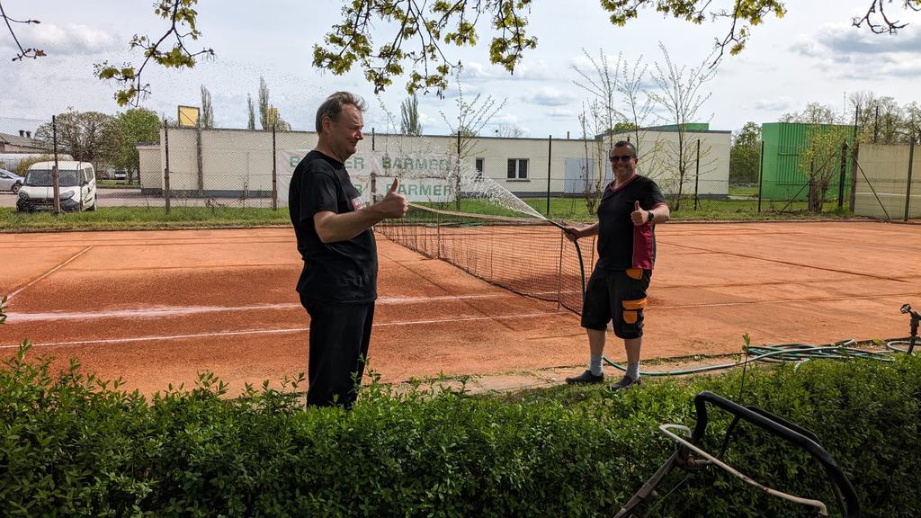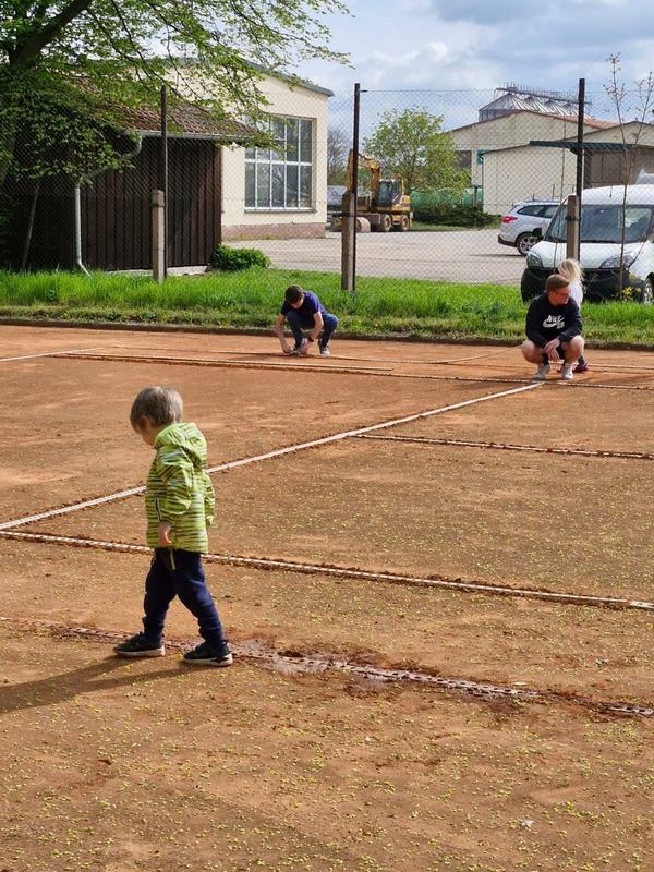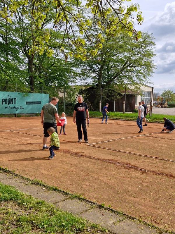 An einem wirklich wunderschönen Frühlingstag am 13. April trafen sich 20 tennisbegeisterte Erwachsene und 6 Kinder zum alljährlichen Frühjahrsputz. Leider hatte es aufgrund von Kommunikationsproblemen nicht damit geklappt, dass die Plätze schon spielbereit mit neuen Linien versorgt wurden. Das wird in der nächste Woche hoffentlich dann ohne weitere Probleme geschehen.