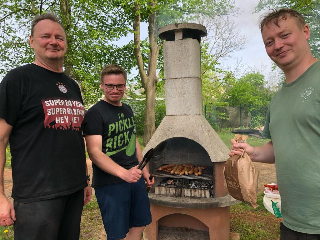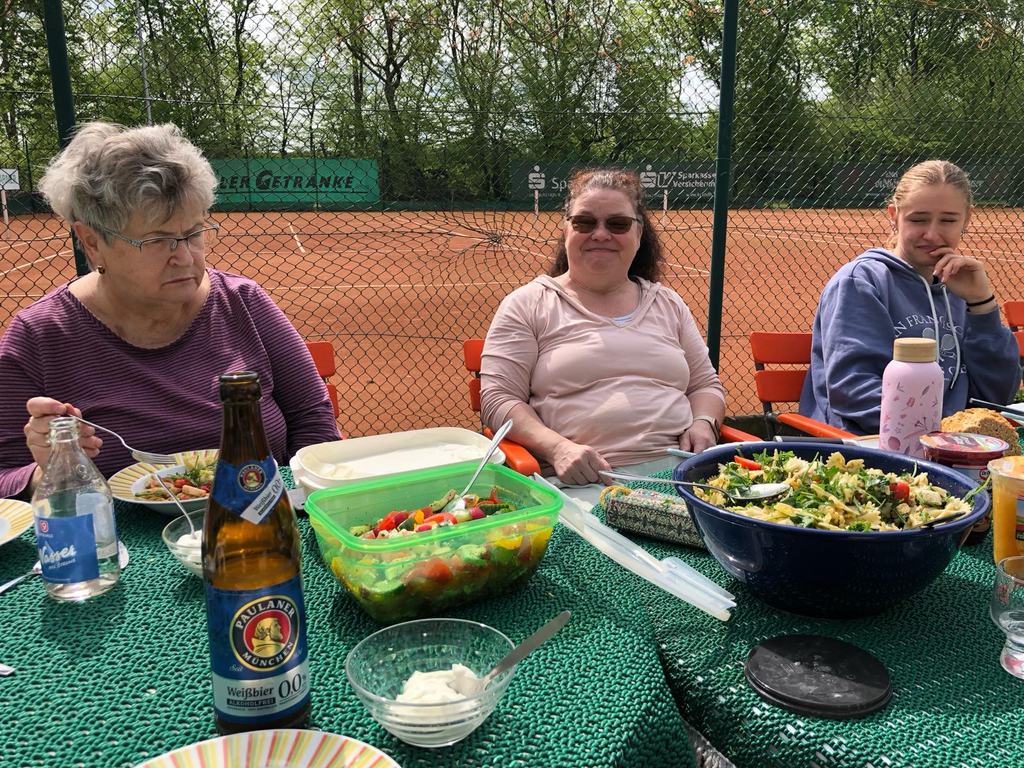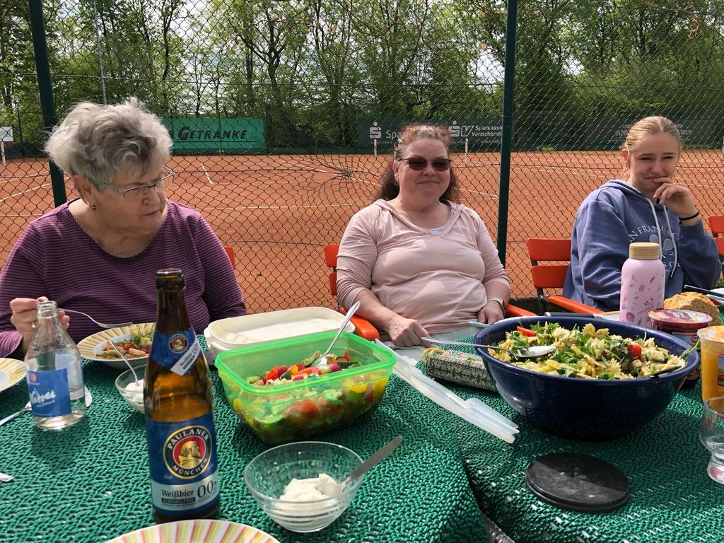 Und wer fleißig arbeitet, soll natürlich auch gut essen. Und so waren von den Frauen leckere Salate und Süßes zum Nachtisch gezaubert worden, die man sich zu den Würstchen und Steaks vom Grill gut schmecken ließ.