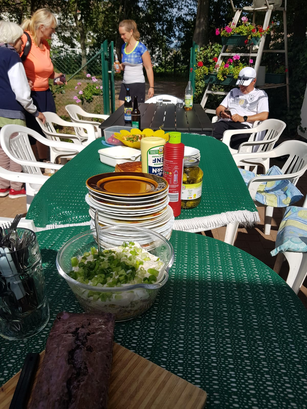 Mit all diesen leckeren Sachen waren die Bäuche schnell gefüllt. Da das Wetter einfach toll war und ausserdem noch 4 Kuchen auf ihren Verzehr warteten, wurde eine 2. Runde an selbst gewählten Paarungen im Einzel- und Doppelmodus eingeläutet. Gute 2 Stunden tolles Tennis wurde noch gespielt, bevor es zum gemütlichen Kaffeeklatsch ging, wo viele Dinge des Vereinslebens besprochen worden. Vielleicht haben wir nächstes Jahr im Rahmen der Punktspiele endlich mal wieder eine Damenmannschaft am Start. Der Ruf nach einem Trainer wurde auch wieder laut- sowohl für die schon spielenden Mitglieder aber auch für die interessierten Sportler aus Nordhausen und Umgebung, die vielleicht dann auch in unseren Verein eintreten würden.